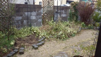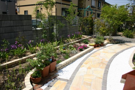 ビフォーアフター 薔薇を生かしたエクステリアリフォームガーデン 姫路市I様邸 今まで御自身でガーデンを楽しまれておられましたが、根の強い植物が手に負えなくなり、今回プロの手にによるガーデンリフォームの運びとなりました。センターのモッコウ薔薇 シランなどを生かしたエクステリアガーデンリフォームです。 イエローの自然石アプローチに、ホワイトレンガにて管理のしやすさを重視してリフォーム設計しました。手前のシマトネリコを生かしたプライバシーも考慮したガーデンリフォームです。 土の部分が多く雑草の管理な大変だった以前 ホワイトレンガに区切られた管理のしやすいエクステリアガーデンリフォーム。アプローチ自然石サイドは防草シートにて完全に雑草をシャットアウトしたメンテナンスフリーのガーデンアプローチです。