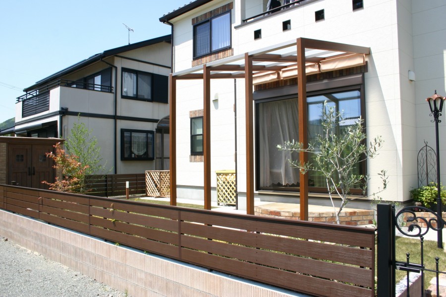 ビフォーアフター ココマのある芝生広がるお庭 たつの市K様邸 緑を取り入れた生活スタイルに合ったお庭をご希望されていました 高さの違う木々を要所に設けることでお庭全体に動きがあり門扉前に人がいてもお庭が直接見えるのではなくシンボルツリーがアイストップの役目もしてくれています ブロック塀だけで仕切られている境界は簡単に出入りできてしまうのでお庭で過ごすには落ち着かない感じです ディーズガーデン:おしゃれな物置カンナを設置、境界ブロックの上にはナチュラルな雰囲気のアルファウッドフェンスデザイン性があり、素材が樹脂なので耐久性にも優れていますココマのある芝生のお庭が爽やかで過ごしやすくなりました