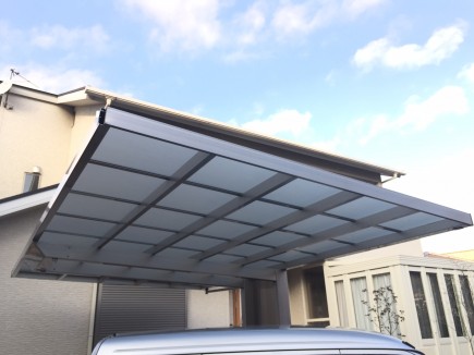 大型トラックがカーポートの屋根にぶつかり屋根の一部と