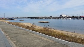 ちょっとした潮風の香りと、アスファルトではない感触にちょっと歩きやすい感じ