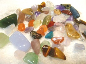 少し水が入った容器の中にたくさんの玉砂利があり、その中には美しく輝く宝石がまぎれています