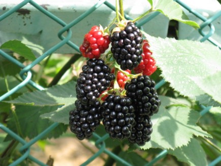 ブラックベリーとラズベリーの黒実種は、果実が一度赤く色付き、次に黒く熟するので、赤くなったからといって急いで収穫しないように!!