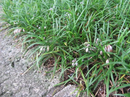 リュウノヒゲ・・・葉の短いチャボリュウノヒゲ(玉竜)、葉の黒い(黒竜)の種類がある。