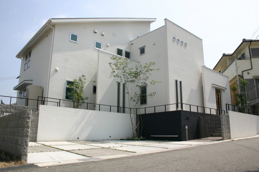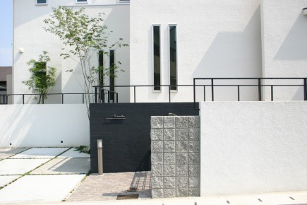 施工実績 新緑の緑が建物外壁に映える 神戸市K様邸 ホワイトとブラックのツートンカラーの吹付けで、シンプルモダンのエクステリアに仕上がりました。 植栽には落葉樹のトネリコ、サイドにはシマトネリコを植樹。 ホワイトの壁にグリーンのアクセントが涼しげに影を写し出します。 異素材の組み合わせで仕上げた門周り 枡目で色を替えた土間デザイン 白の外壁に爽やかな緑が映えます 黒塗装のステンレスフェンス エクステージ