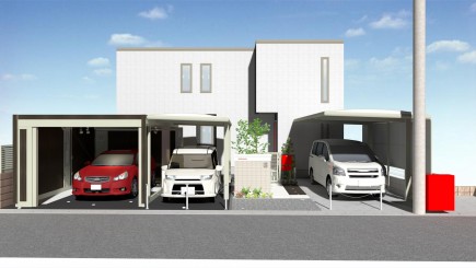 スタイルコートにカーポートを取付けて一体感のある仕様にしています