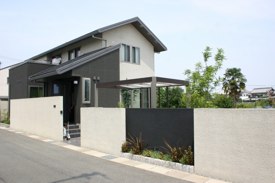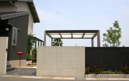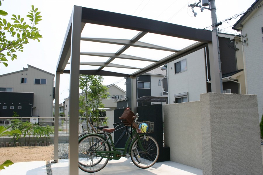 施工実績 建物と調和したモダンな自転車置き場|プラスG 姫路市T様邸 モダンな印象の意匠壁に似合うデザイン性のある自転車置き場をプラスGでつくりました フレームに使用していますこげ茶の木目が水平ラインを強調しています 屋根全体もフラットな仕上がりですっきりとしています before 道路面から見える意匠壁の宅地側のスペースを自転車置き場として考えました プラスGでつくる、おしゃれな自転車置き場の奥にはココマが見えます ココマ・花壇の植栽をピックアップした施工例はこちらからどうぞ before 既存でありました白・黒の壁で自転車を目隠ししてくれています before 車庫スペースも砂利のままでしたので、コンクリートで出入りがしやすくなりました