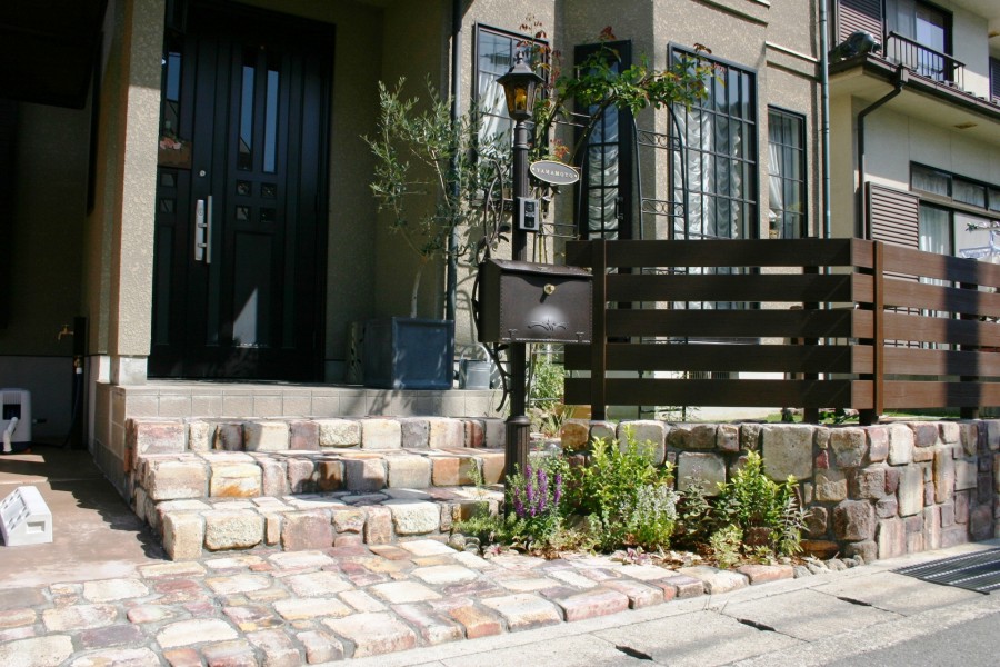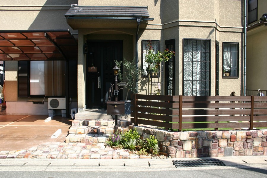 施工実績 たつの市外構リフォーム アンティークレンガで門回りをおしゃれに 開放的な門周りデザイン 機能門柱・フェンスの雰囲気と耐火煉瓦がよく似合っています耐火煉瓦がお好きな、たつの市Y様邸がアンティークな雰囲気のお庭に仕上がりました 2台分の車庫スペースを確保し、植栽の量も少し減らしすっきりと 土留めの塀には耐火煉瓦を使い、全体的にオープンで明るい雰囲気になりました 門周りからの繋がりを持たせるのに煉瓦での塀がアンティークな雰囲気があります 2台分の駐車スペースを確保しています お車がない時にはカラークリートが煉瓦と馴染み繋がりがあります