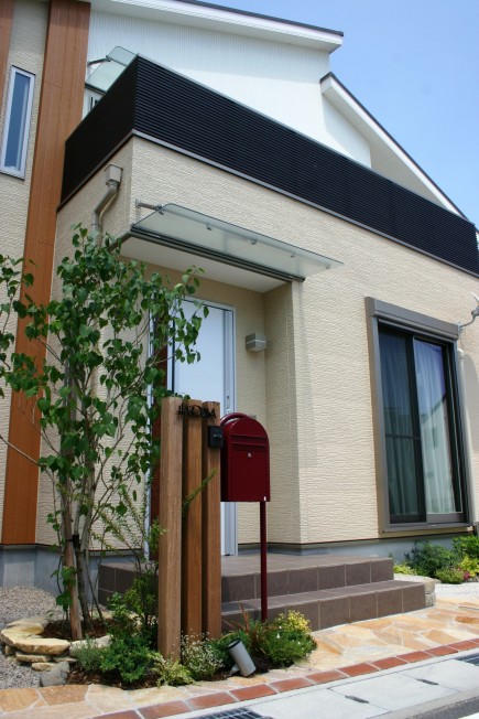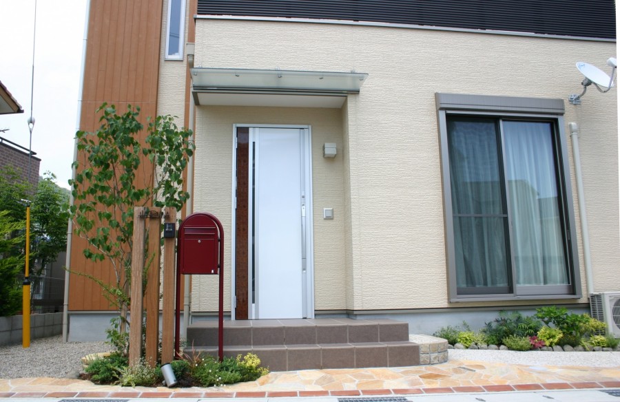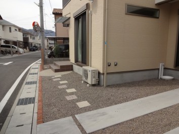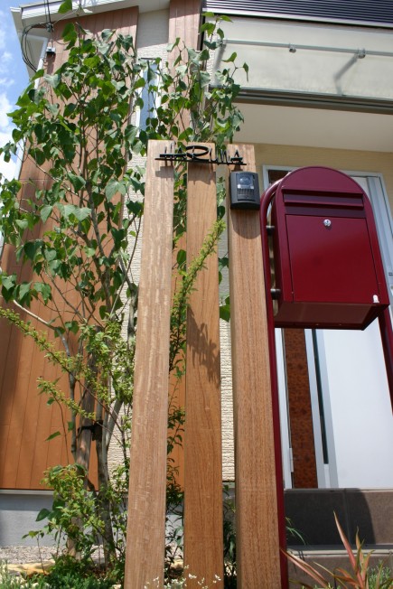 施工実績 たつの市外構リフォーム ウリン材スリットで自然な門回り 外構付の住宅を購入されましたが、ご家族の生活スタイルや好みと違っており 一部を残してリフォームさせていただきました たつの市H様邸 自然石を使い敷地全体に繋がりを持たせ、要所に緑を取り入れ爽やかな印象になりました 駐車場はカーポート+サイドパネル2段でお車がご趣味のご主人さんのご要望でした ウリン材とライラック スリットのウリン材に真鍮製サイン 以前は飛石程度でしたので駐車場から玄関までが歩きづらいということでした 既存のレンガ縁取りは残し自然石で歩きやすいアプローチを作りました玄関ポーチもサイドにステップをとり使い勝手が良くなりました