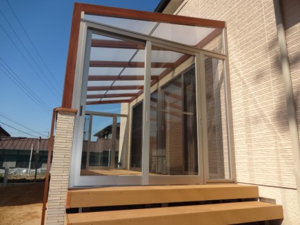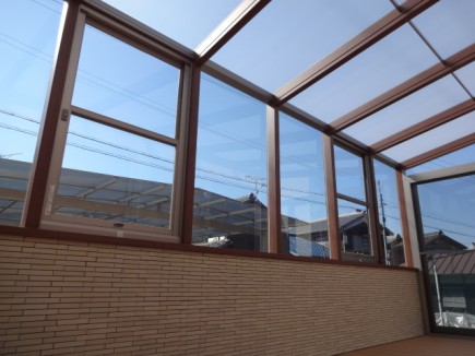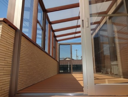 施工実績 子供の遊び空間|ココマガーデンルーム腰壁 太子町K様邸 リビング/ダイニングから繋がるお子様の遊べるスペースとしてガーデンルームをご提案させていただきました太子町K様邸大きな掃出し窓が連続してありましたので、その二つの窓をカバーする3.0間のココマガーデンルームを設置することになりました室内からのつながりをもたせるため腰壁には建物外壁の雰囲気に合わせたボーダータイルを張っています出入りできる側面には引戸仕様に変更し使い勝手の良いお庭空間となりました before イメージパース 側面は引戸で出入りができます扉の開閉スペースを取らず 建物掃出し窓の延長でココマでの空間を満喫していただけます ウッドデッキで仕上げたガーデンルーム内は天気の良い日には転んでお昼寝も出来ます 前面窓には風を取り込む上下上げ下げ窓を2ヶ所設けています網戸も標準でついていますので風だけを通してくれます クリアガラスでココマから見る空も気持ちがいいです
