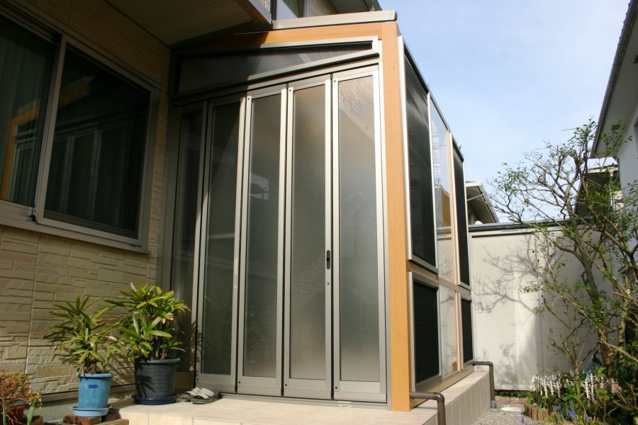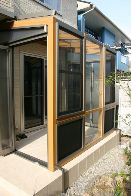 施工実績 お友達と楽しくおしゃべり|ココマガーデンルーム たつの市S様邸 お友達とお茶しながら過ごす空間をご希望されていましたS様 ココマのガーデンルームで素敵なガーデンライフを満喫して頂けます タイルテラスにはアイアンのテーブルやイスも良く似合いそうです before 平面・イメージパース ココマの前面部分は庭木が良く見える様にと透明ガラス仕様になっています 上げ下げ窓の下には可動ルーバーを付けることでより風通しも良くなります すっきりとしたタイルテラスが外内の空間を一体にしてくれます 側面パネルは目隠し効果のあるすりガラス調のものを使用しています