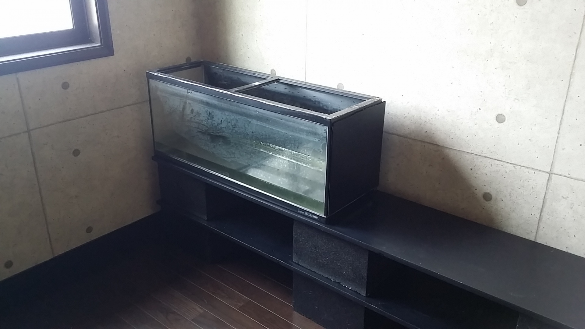 隣に水草の水槽をセットするのは早くてお盆それ逃すとお正月くらいですかね