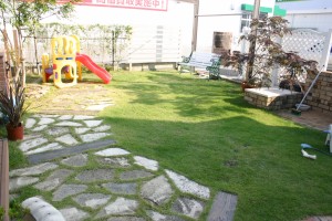 面積≒70m2の天然芝生のキッズスペースです。お子様が安全に遊べます。
