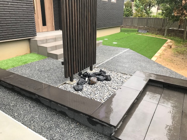 セメントの本洗い出し 黒玉砂利 セメントの本洗い出し エクステージの洗い出し技術 姫路エクステリア ひがしぐち ブログ綺麗な洗い出し仕上げになりました 掘削 掘り方下地コンクリート ブロック積 平板敷セメントの本洗い出し仕上げこの本洗い出しの技術力はエクステージの強み(^^♪ 綺麗な洗い出し仕上げとなりましたエクステリア工事は是非エクステージまでひがしぐち