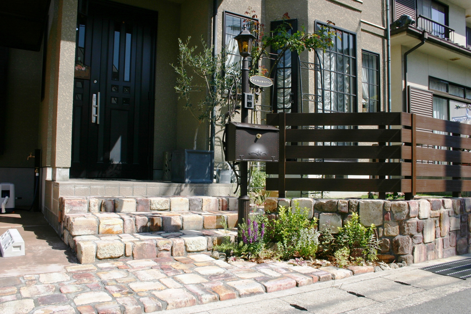 たつの市外構リフォーム アンティークな雰囲気のお庭にリフォーム 2013年11月30日 12:44 トータルデザイン 施工例,門周り 施工例 カラークリート, ディーズガーデン, 耐火煉瓦 耐火煉瓦がお好きな、たつの市Y様邸がアンティークな雰囲気のお庭に仕上がりました 2台分の車庫スペースを確保し、植栽の量も少し減らしすっきりと 土留めの塀には耐火煉瓦を使い、全体的にオープンで明るい雰囲気になりました before 平面・立面計画図 開放的な門周りデザイン 機能門柱・フェンスの雰囲気と耐火煉瓦がよく似合っています 煉瓦のコーナー部分は職人技が光ります(^-^) 玄関タイルも一部撤去し、耐火煉瓦でステップを設けています 門周り施工前 門周りからの繋がりを持たせるのに煉瓦での塀がアンティークな雰囲気があります 土留めの塀施工前 2台分の駐車スペースを確保しています お車がない時にはカラークリートが煉瓦と馴染み繋がりがあります 車庫スペース施工前