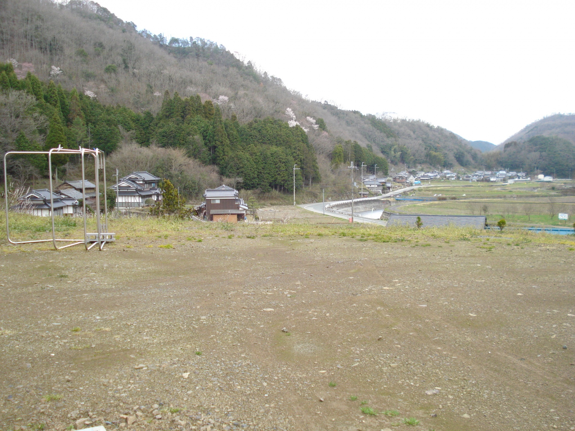 ビフォーアフター おしゃれな物干しのある里山の家 佐用町T様邸 洗濯物をおしゃれに干したい!!奥さまたってのご要望でした。 里山に建つおしゃれな洋館に似合う物干しをご提案させていただきました。風で倒れないよう土台にレンガを積んでしっかり固定し、デコラティブなアルミ鋳物でできた物干しが完成しました。