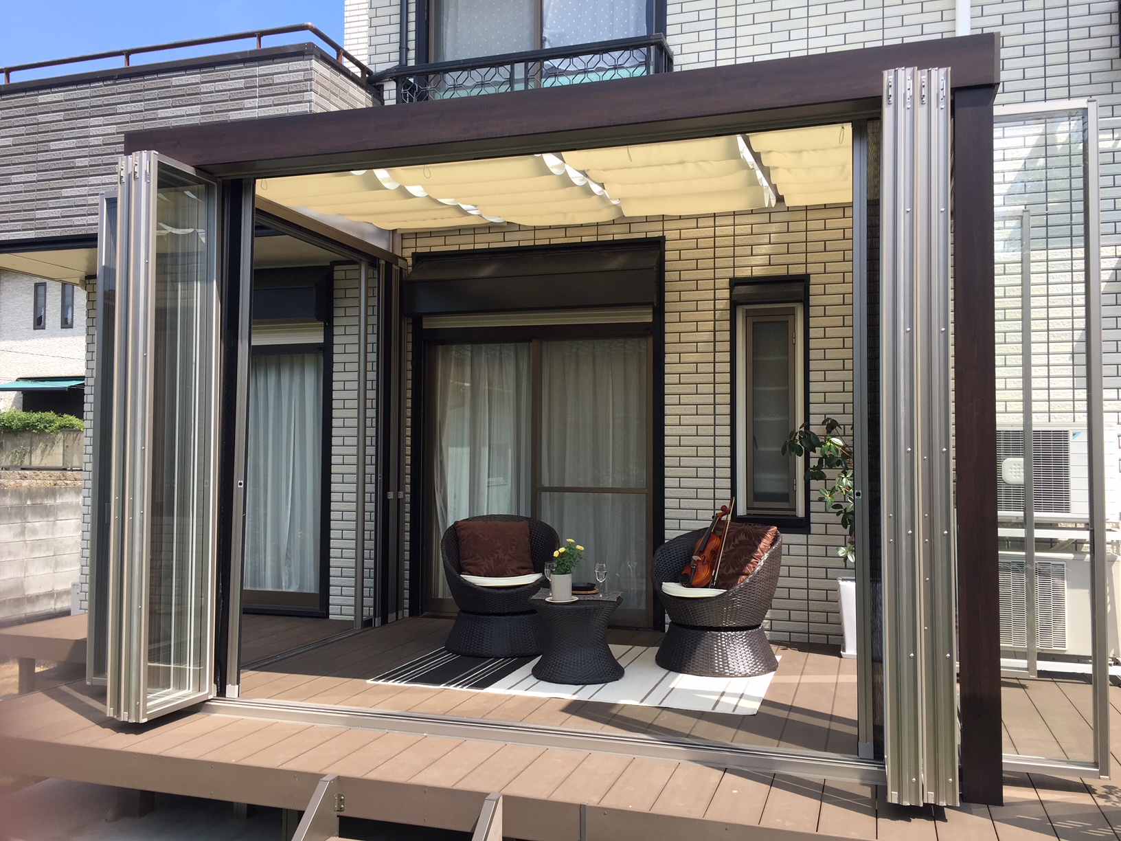 経年変化や耐久性のあるLIXIL:樹ら楽ステージを掃出し窓前に設けて
