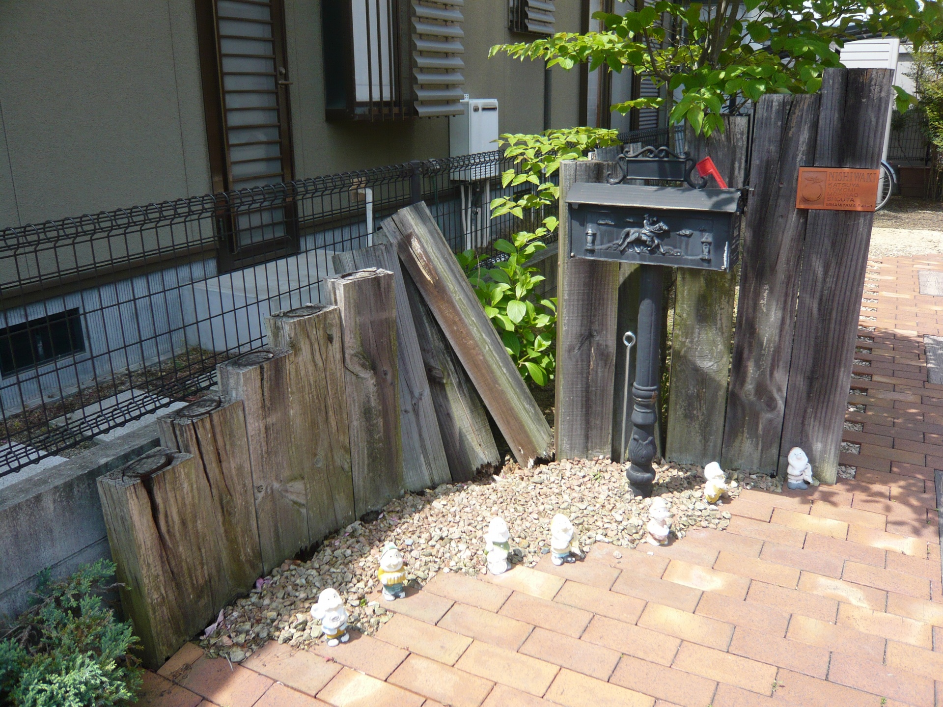 ビフォーアフター 10年目のリフォーム たつの市N様邸 10年前に施工した枕木の門柱が根元で腐ってしまったので何とかしたいとご来店いただきました。 門柱は、外壁と馴染みやすい色で仕上げました。思い出の詰まっている表札を再利用しています。さらに、土留めを兼ねてアンティークレンガを積みアール型のベンチを作りました。