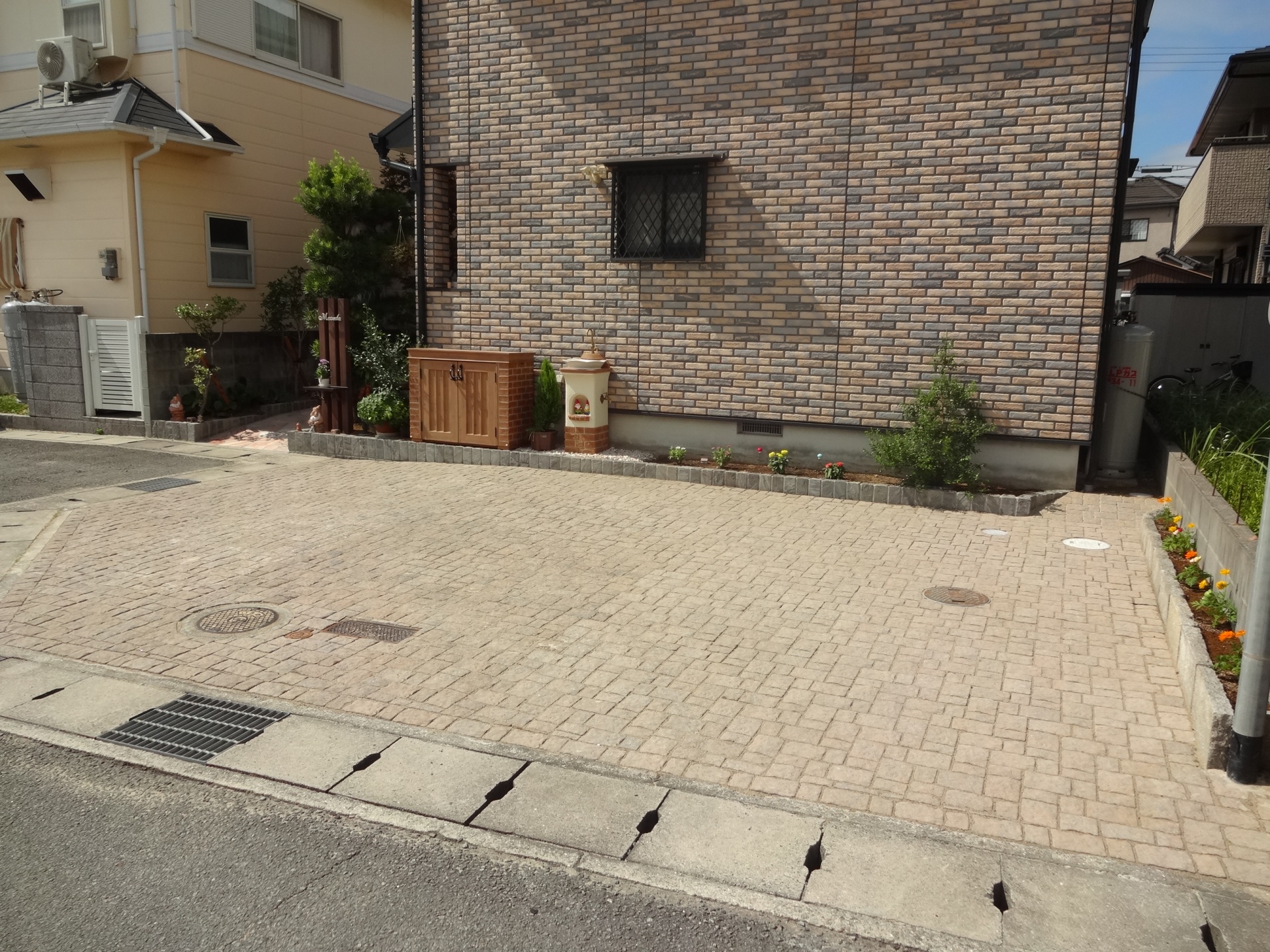 石畳み風インターロッキング敷きパーキング 姫路市M様邸