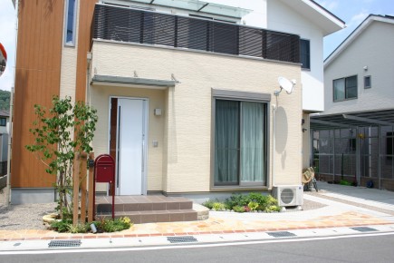 ビフォーアフター 自然素材でナチュラルにリフォーム たつの市H様邸 機能門柱ではイメージと違い自然な雰囲気で門周りをイメージされていました ハードウッドで門柱を設け、そのすき間越しから植栽の緑が覗き見れます インパクトのあるボルドー色の独立ポストが良く合います ハードウッドで門柱を設け、そのすき間越しから植栽の緑が覗き見れます インパクトのあるボルドー色の独立ポストが良く合います オープン仕様なので全体に統一感をもたせたいとのことでした アプローチの自然石乱張りを玄関ポーチ前から車庫にかけて繋げる事でおしゃれなエクステリアとなりました メイン車庫スペースから玄関へのアプローチをご希望されていました 幅寄せでお車も停めれればと言われていました 全体に統一感が出るように自然石乱張りでアプローチを作っています