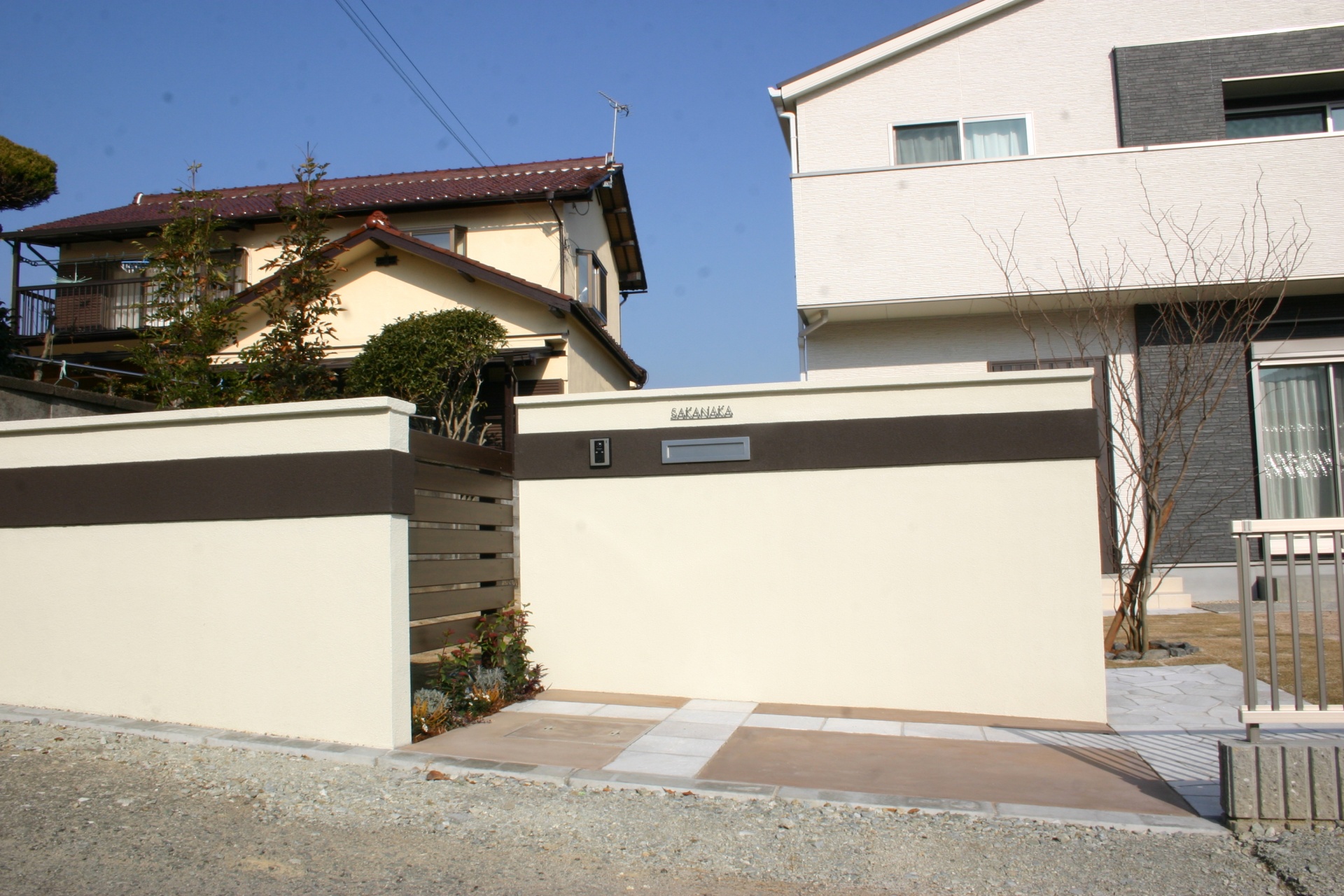 ビフォーアフター 青空に映えるマルバノキ 相生市S様邸 全体にオープン過ぎるのは好みではないということでしたので、セミクローズ仕様でご提案させて頂きました 前面道路の幅員が狭く来客の待ちスペースとして門袖壁を前後させ踊り場を設けています 更に玄関までのアプローチまでにはシンボルとなるマルバノキを植えています 玄関前をちょっと隠す 役目もしてくれます 竣工時は冬季でしたので芝生や落葉樹も冬眠時期でした 春から初夏を迎え青々としてきました
