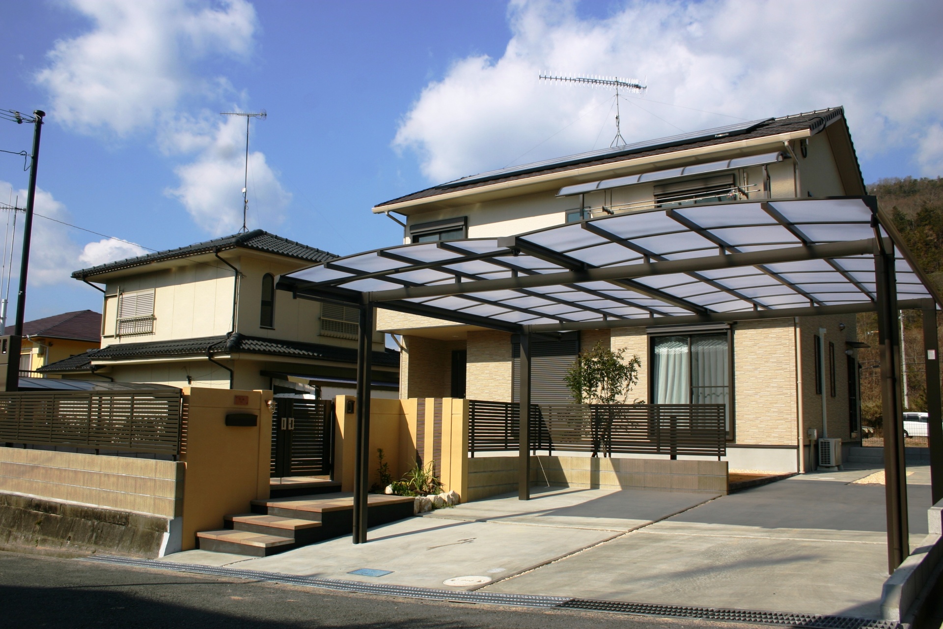 ビフォーアフター いつかペットと暮らす家 上郡町N様邸 将来お庭でワンちゃんを遊ばせたいので、いつか閉じることのできる外構プランにしたいとのご要望でした。 将来、カーポートの後ろに伸縮門扉を取り付けられるようにして、お庭と駐車場を分けて閉じることが出来るようにしました。