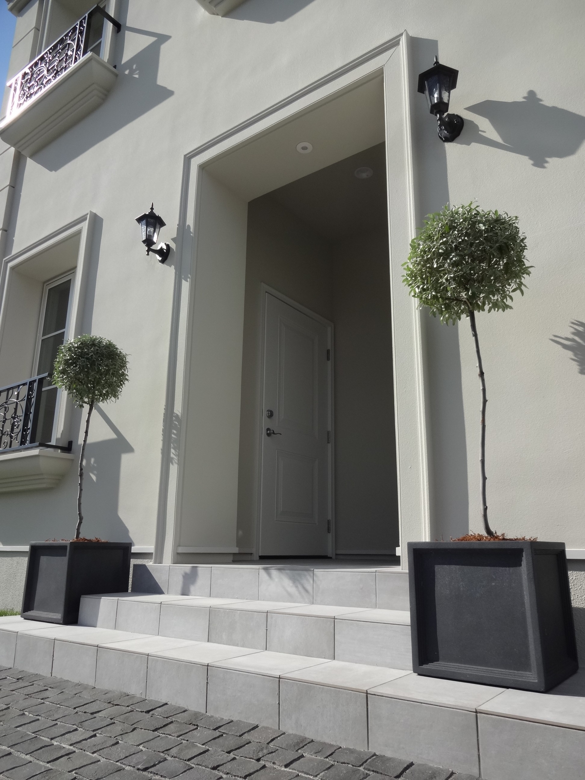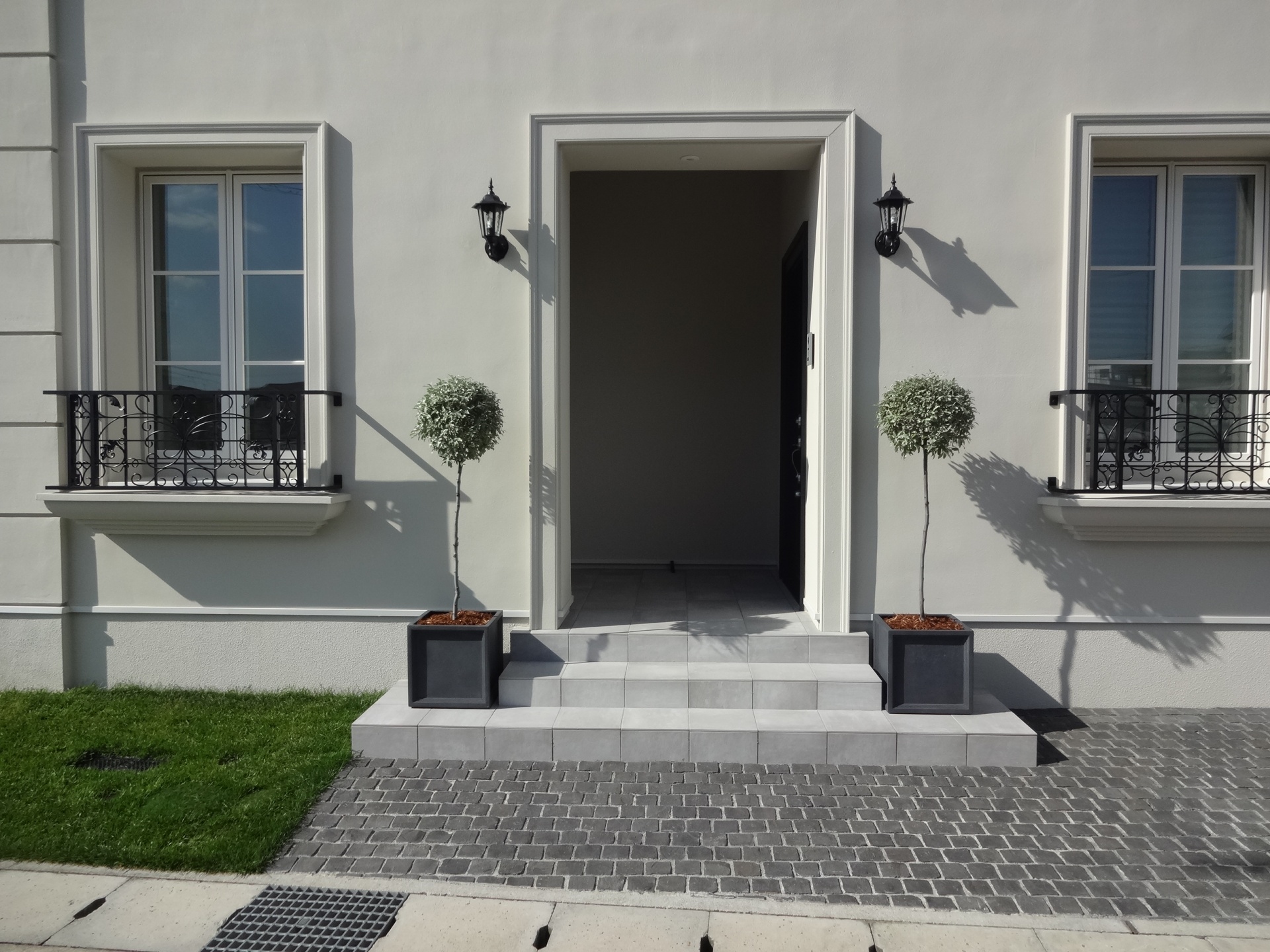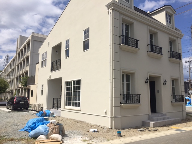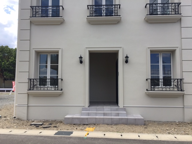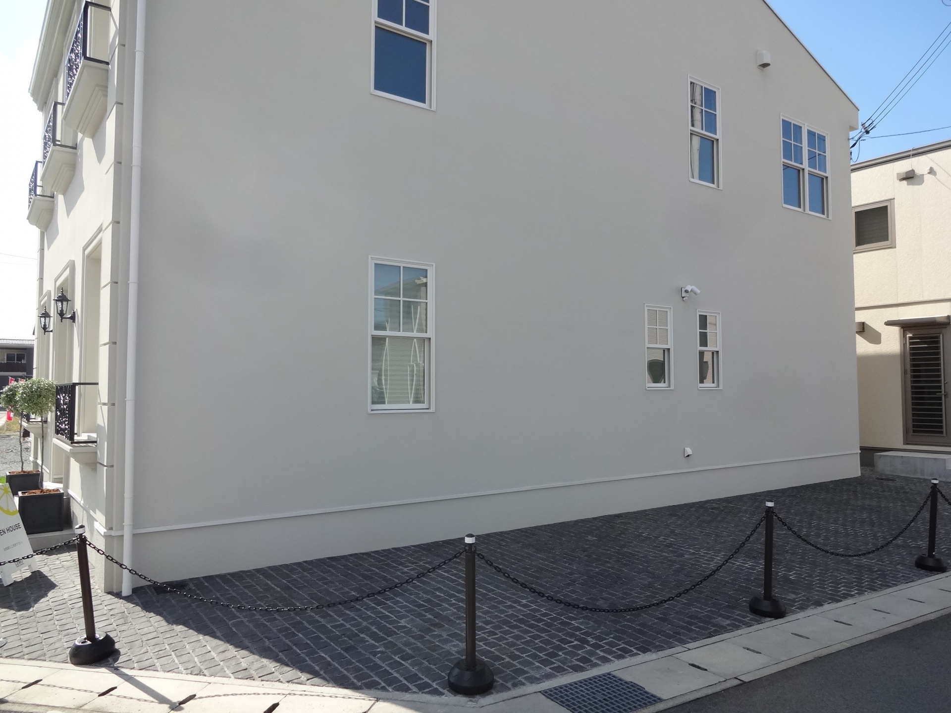 ビフォーアフター モデルハウスLEMO CLASSIC 株式会社LEMO様邸 「現代的なすみやすさ」というコンセプトに立てられた個性あるモデルハウス 姫路市でモデルハウスをオープンされました株式会社LEMO様邸この度良いご縁があり外構工事をさせて頂くことになりました建物を引き立たせる様に外構では主に芝生やピンコロ敷きといった土間部分の工事となりますシンメトリーなデザインが印象的です 玄関前にはおしゃれな鉢植えをご用意させて頂きましたトピアリー風に仕立てられたロシアンオリーブの鉢植え パーキングスペース予定のこちらにも玄関前からつながりを持たせてピンコロ石を敷き詰めました