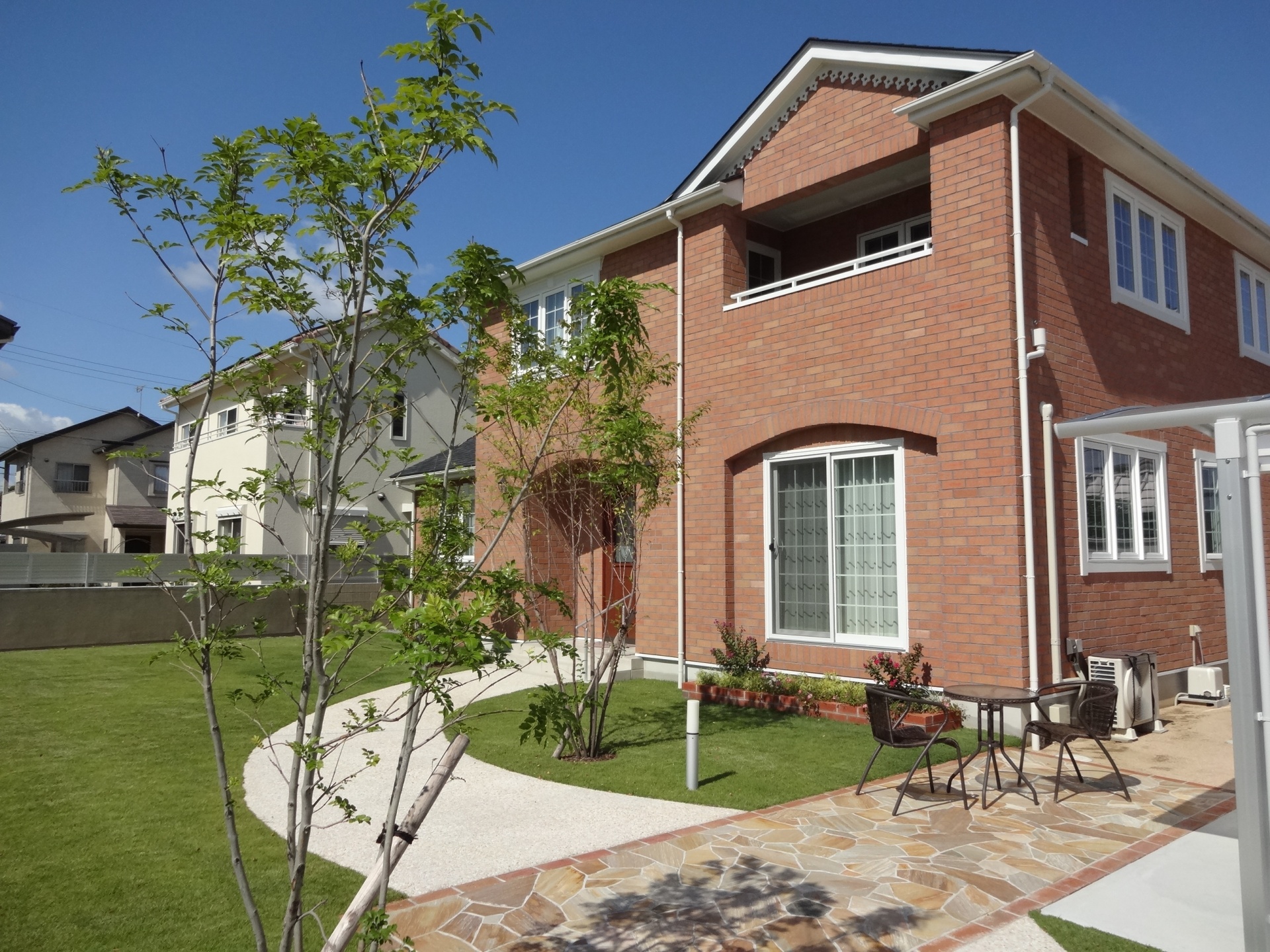 石材やレンガを使用することでバランス良いエクステリアが完成しました