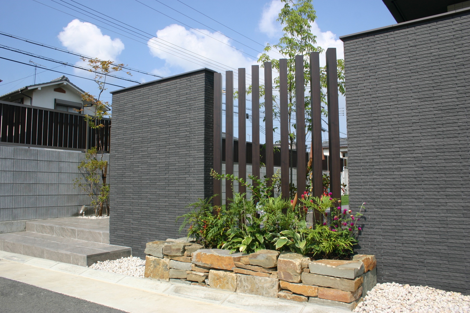 建物の迫力に負けないダイナミックな門回り 加古川市S様邸