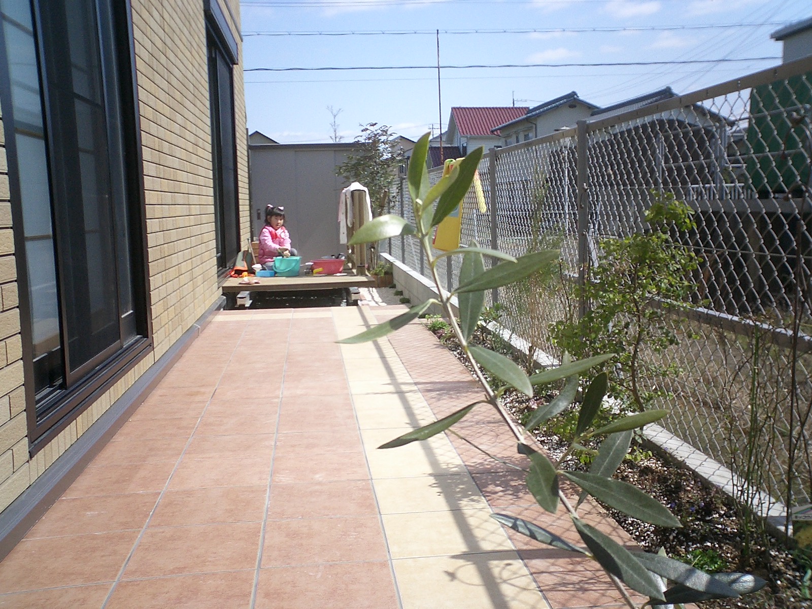 ゆかちゃん、今度はお花を眺めながら、新しいタイルテラスで遊んでね