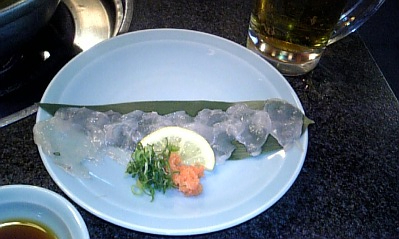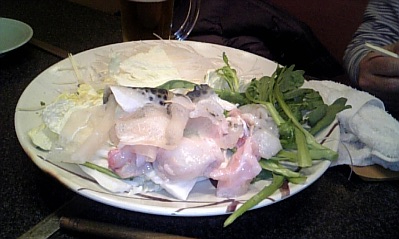 うまいもの紀行 2009年3月26日 昨日、西九条でふぐを食べてきました一流シェフが通うだけあって、ホント「旨い!!」12月は予約も取れないほどの人気だとか・・・ポン酢も「旨い!!」・・・とか言いながらコレが旭ポン酢だったなら笑うけどお店の名誉?のためにも言っておきます。そんなことはありません!!とにかく旨い!!もちろん、こちらも・・・熱々の燗酒に炙ったヒレ・・・お酒がいっそう美味しくなりました最後のとろとろになった雑炊までしっかりいただき、大満足でタクシーに乗り込み2次会へと向かいました。・・・大人の夜?は長いのだ・笑いや、たぶん飲み足りないだけなのかも続きは、明日のブログで・・・おおなか