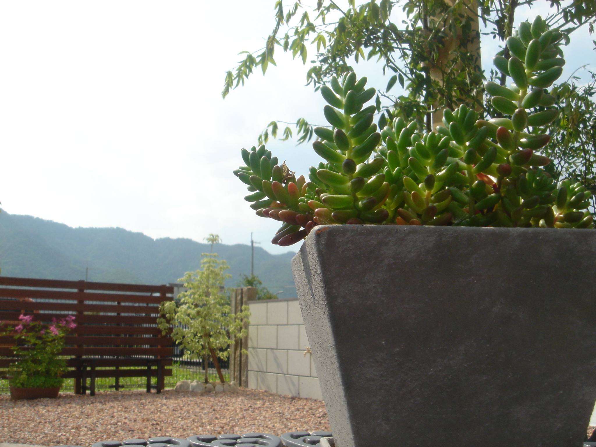 プリプリのセダムくんが見守る中、完成しましたお庭は