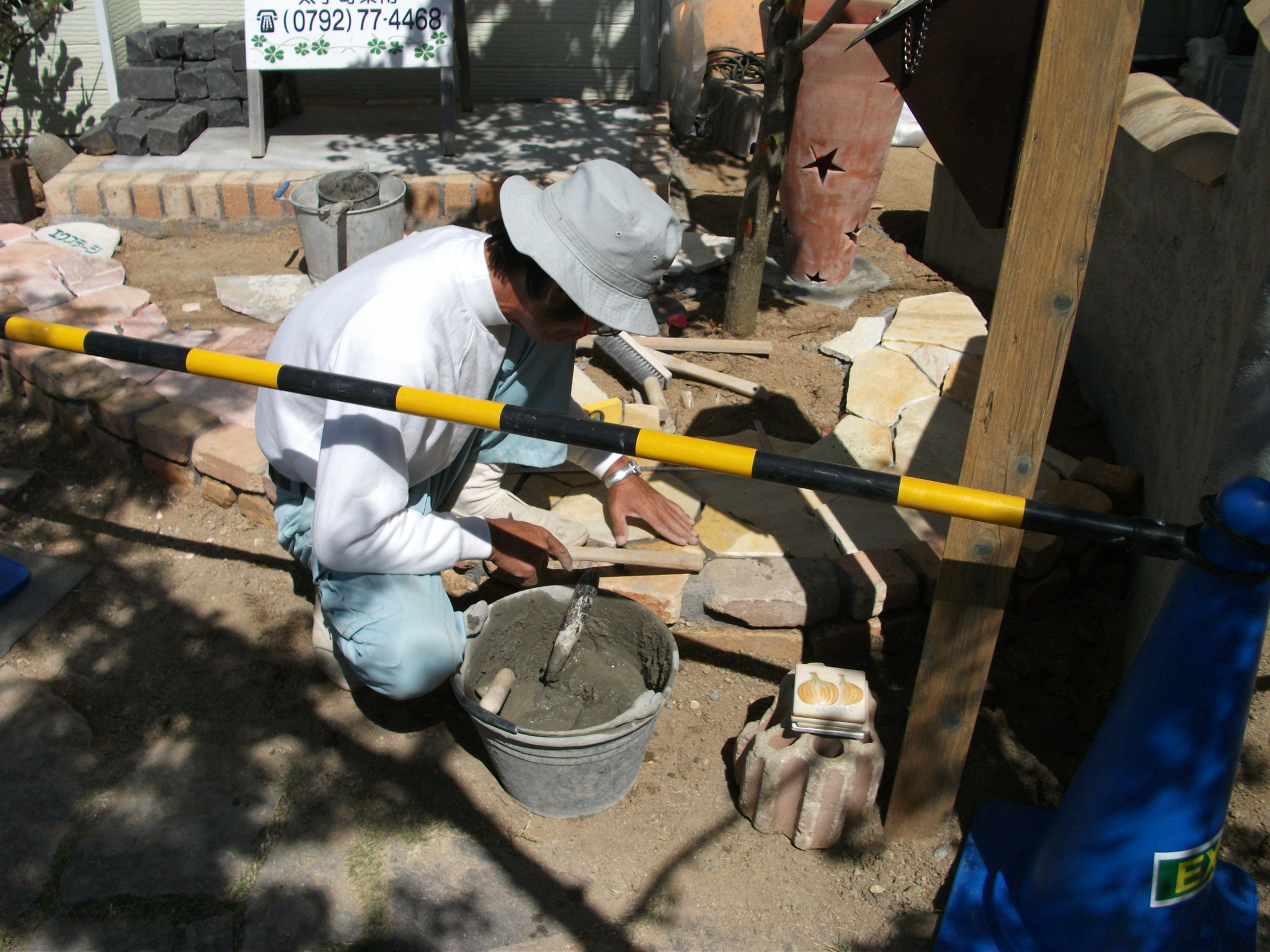 また、職人さんの作業を実際に実演しています 今日の作業は自然石貼り