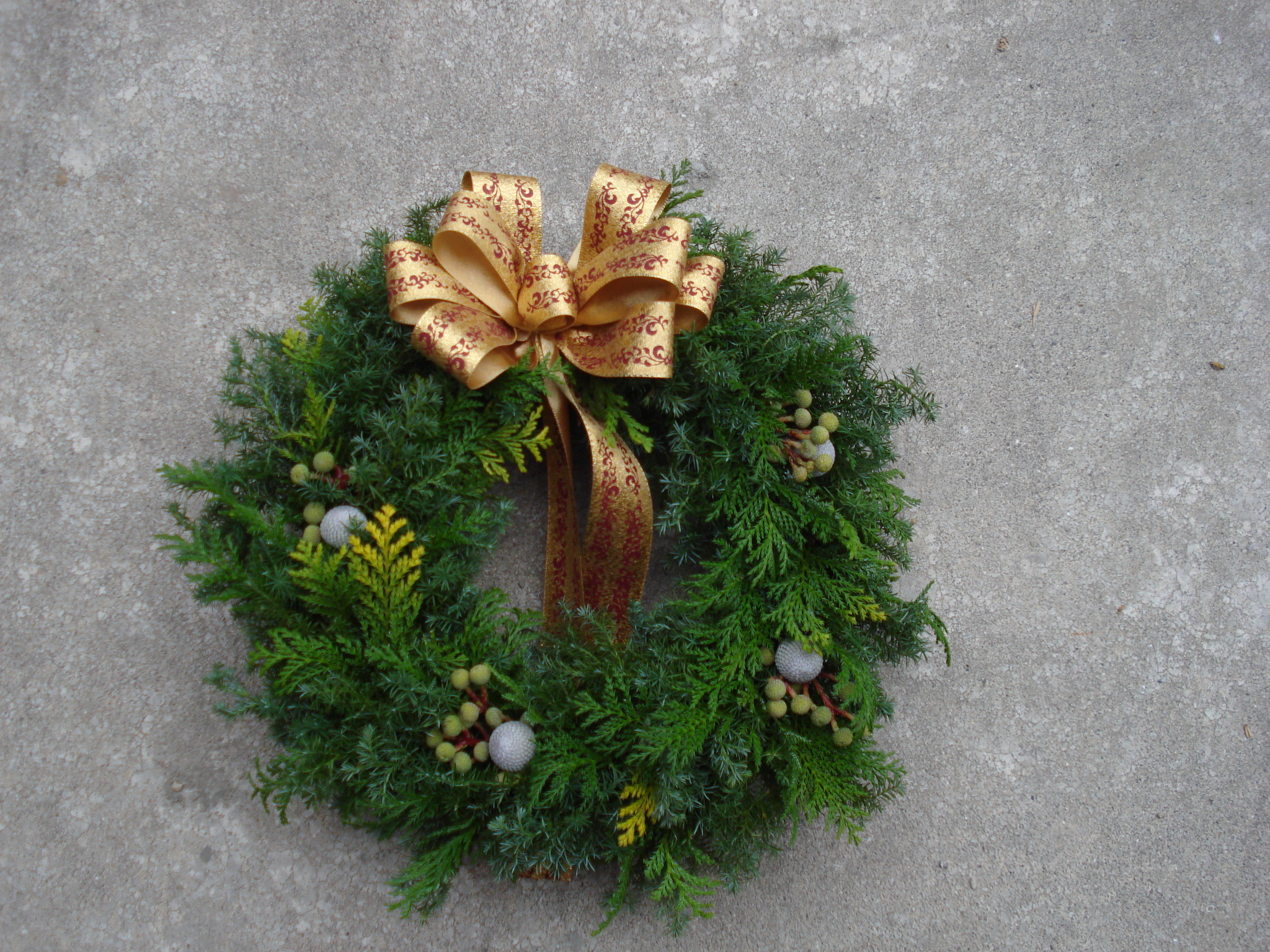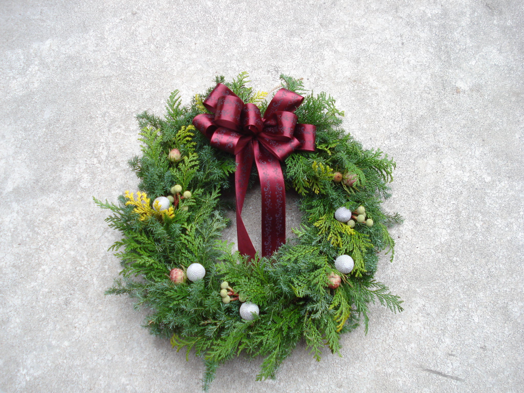 針葉樹(サツマスギ、ヒバ、モミなど)をつかった「生」のリース。