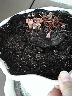 シクラメン成長日記 2010年1月12日 新年明けましておめでとうございます。 今年も、宜しくお願い致します。 年が明けて、もう12日です。どんなお正月でした? 私は、のんびりしたお正月でした。 私事ですが、子供が受験で、なんか落ち着き ませんね(何回経験しても、親は、嫌です・・・) 受験生の皆さん、そして影で応援している親御さん、春が来るのを祈りましょう このシクラメンは、昨年冬眠から、復活させたものです。やっと芽(赤ちゃん)がでました。 見えますか?まだまだ可愛いですが、春には、花を咲かせたいです。(頑張れ!!)成長日記をまた書きます。お楽しみに!! ふくちゃんでした。~