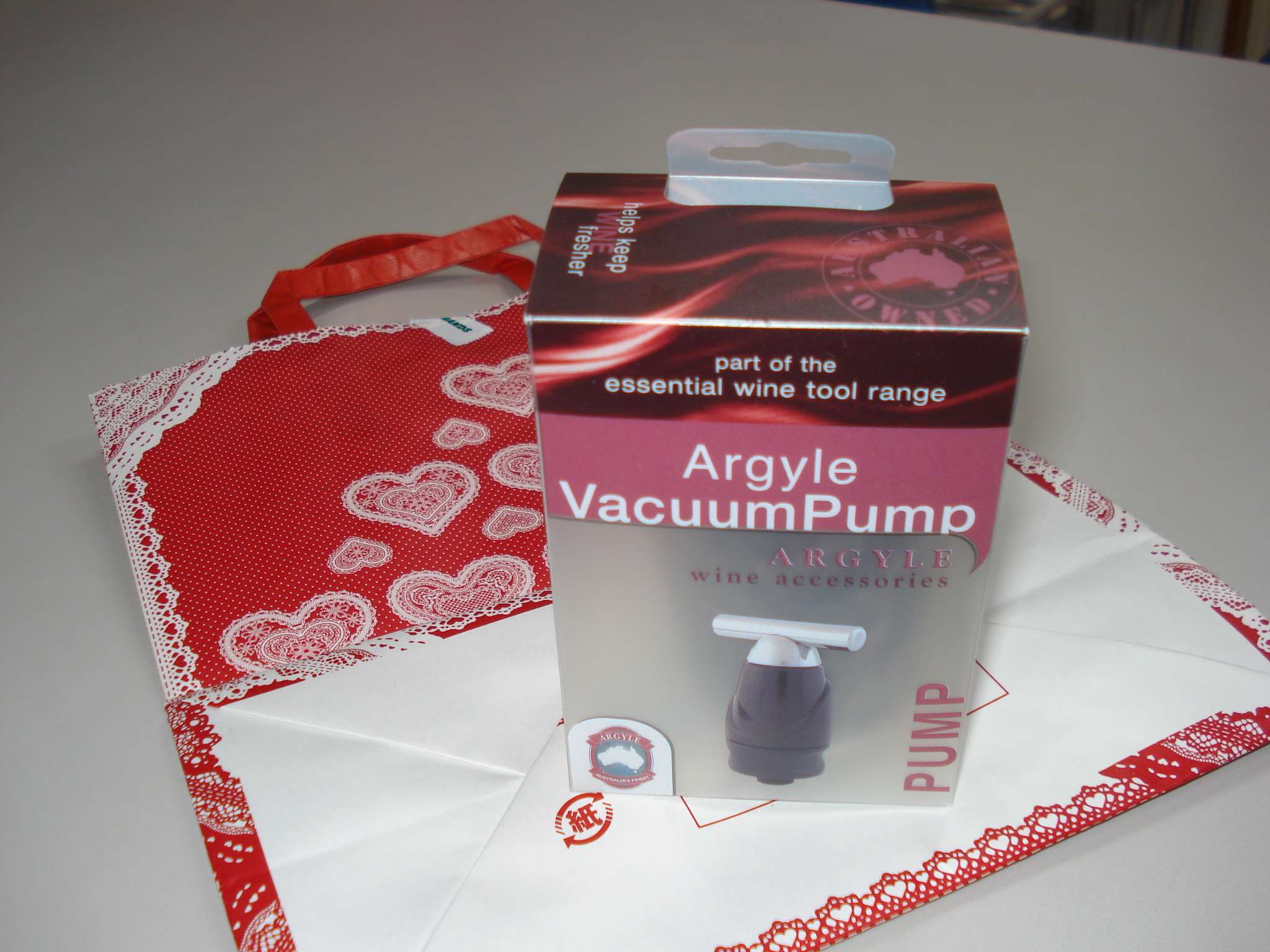 ワインボトルを一人で空けるには少々日にちがかかりますので、ワインの風味が落ちないよう、ボトルの中を真空にしておく道具です。