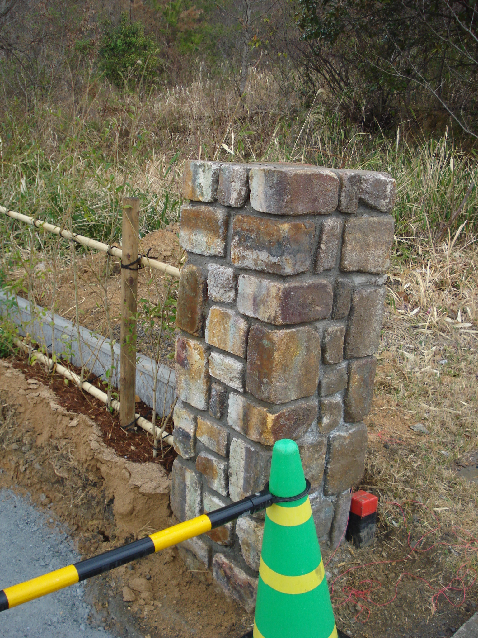 レンガ角柱も雨に洗われて、少し、白っぽくなってきました。
