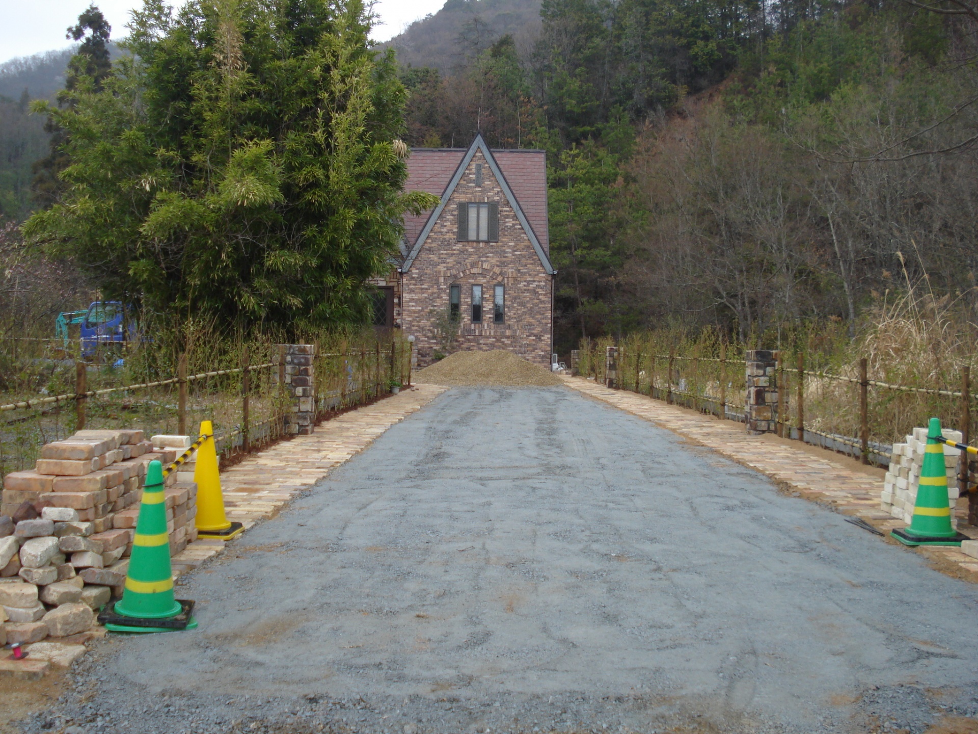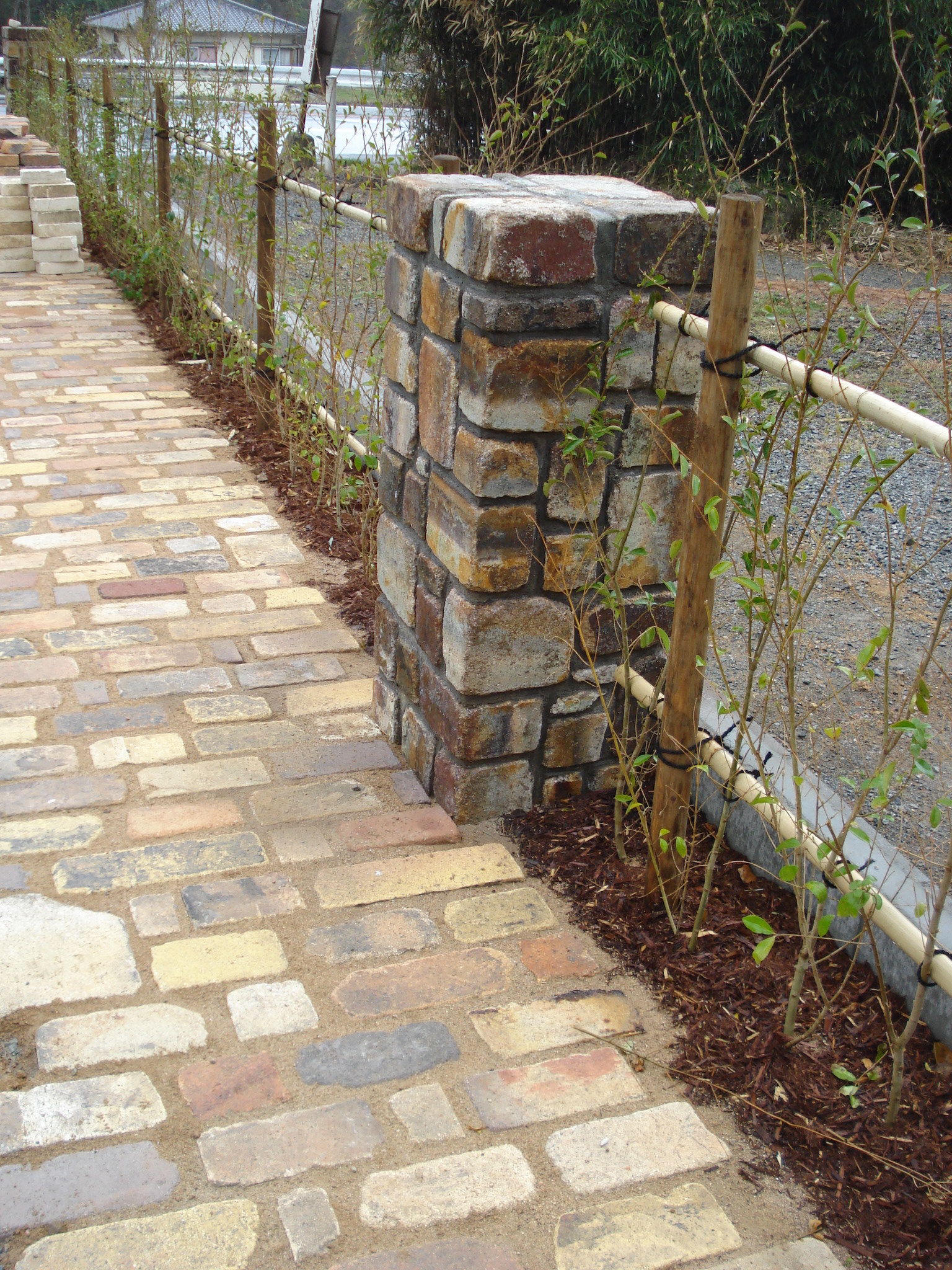 なが~いアプローチをアンティークレンガ敷きにしたのですが、思った以上に手間と時間がかかりました。