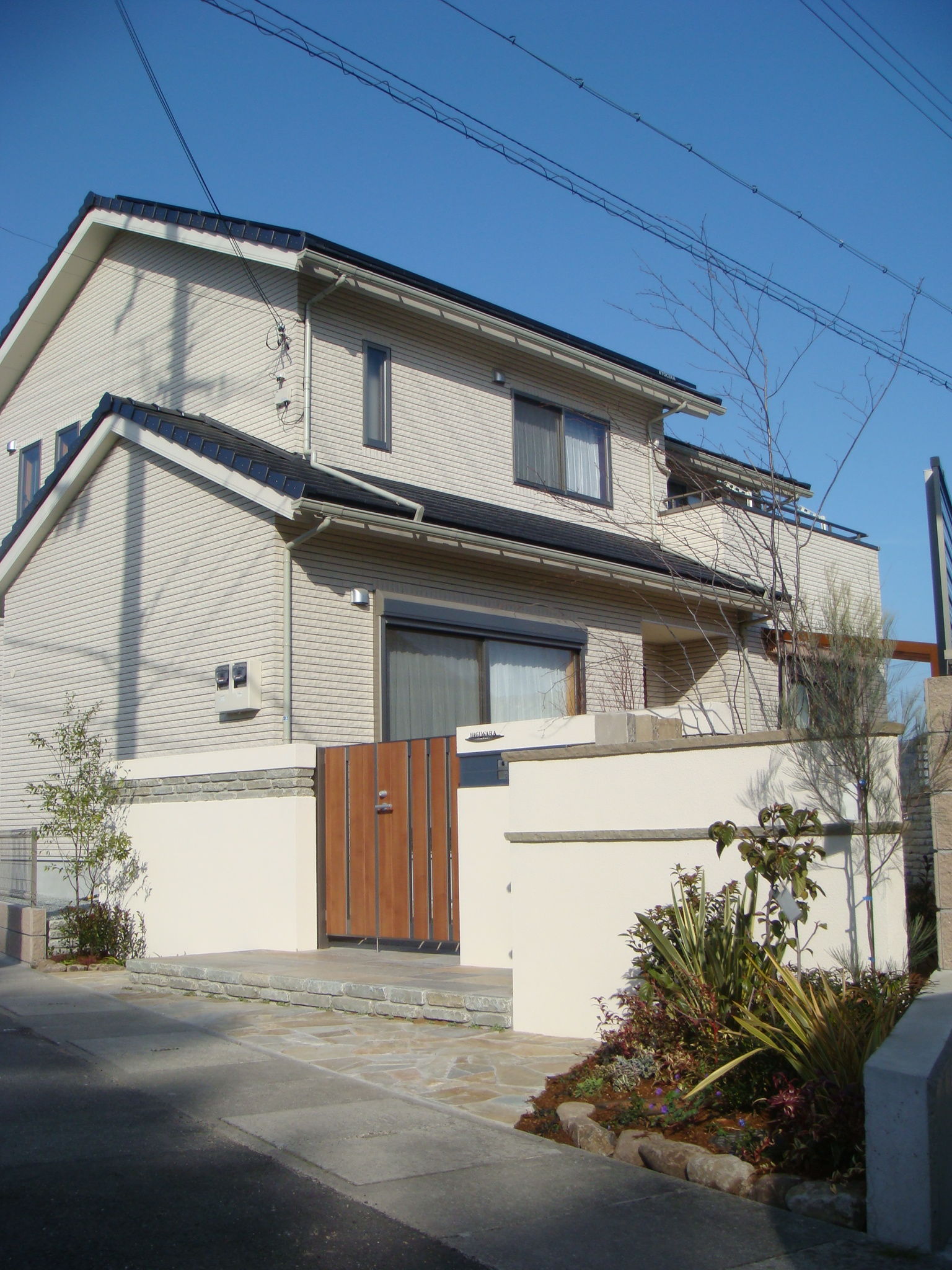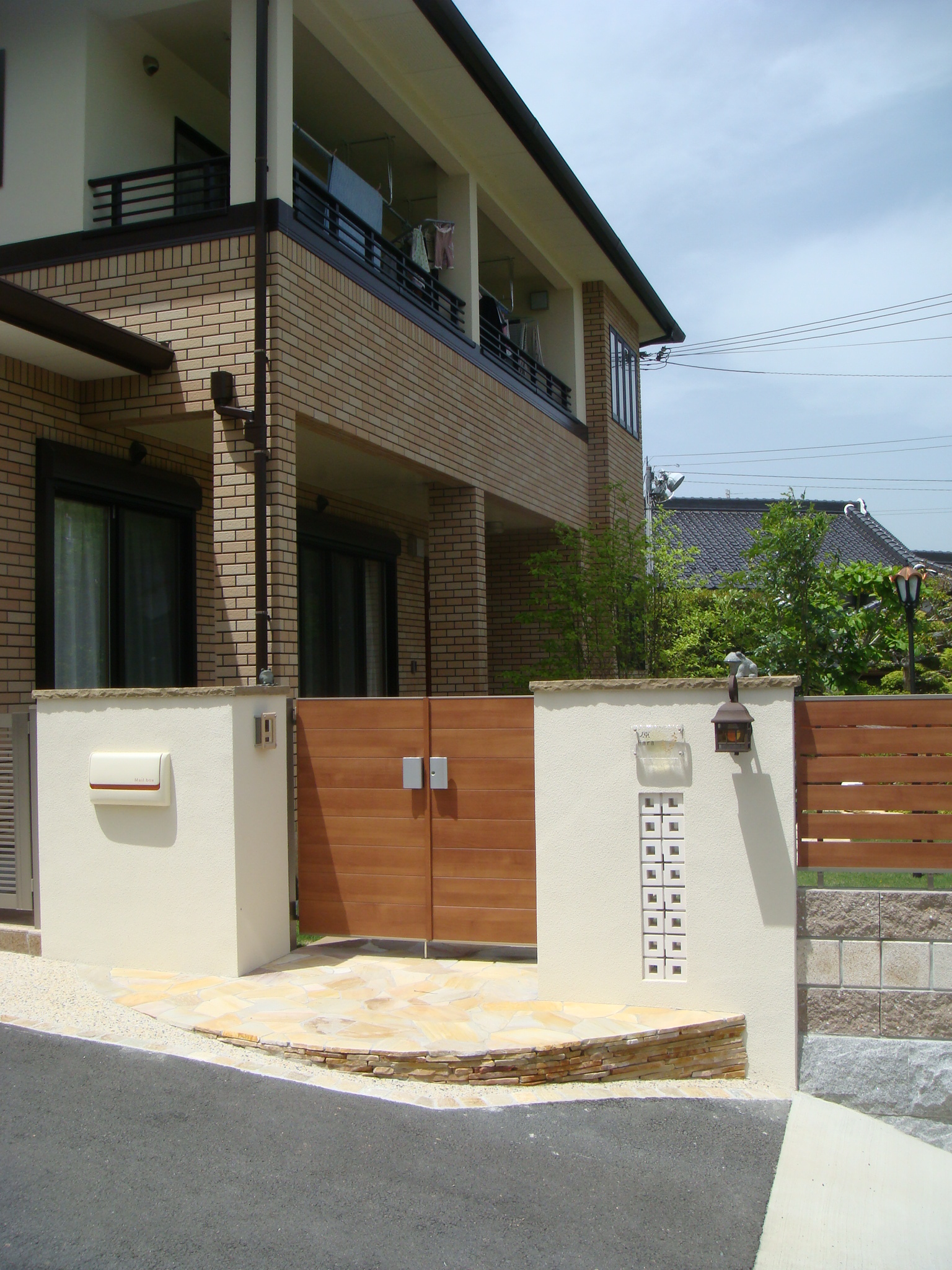 ステップの設け方、使用素材選びで随分と印象の変わる門周り。