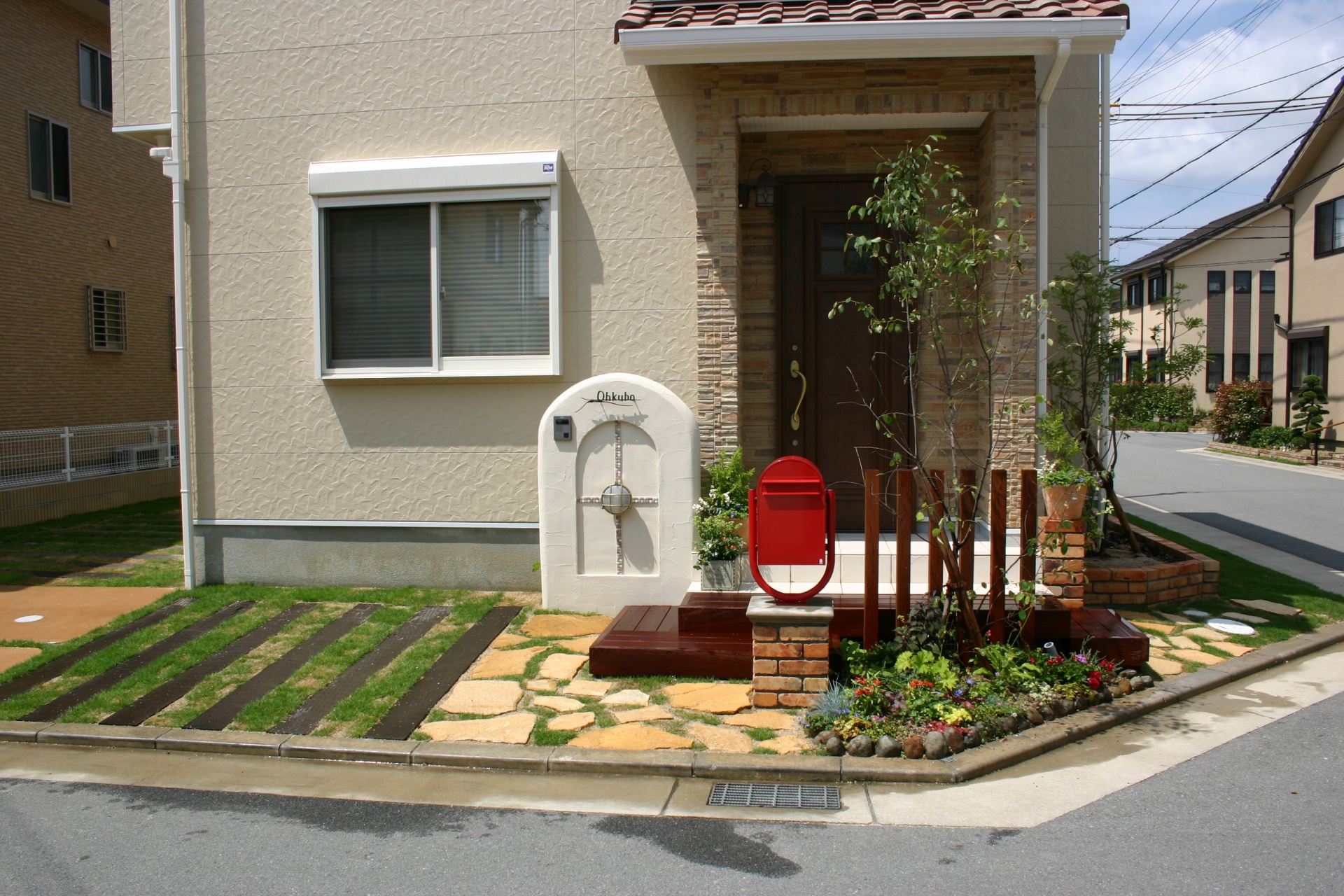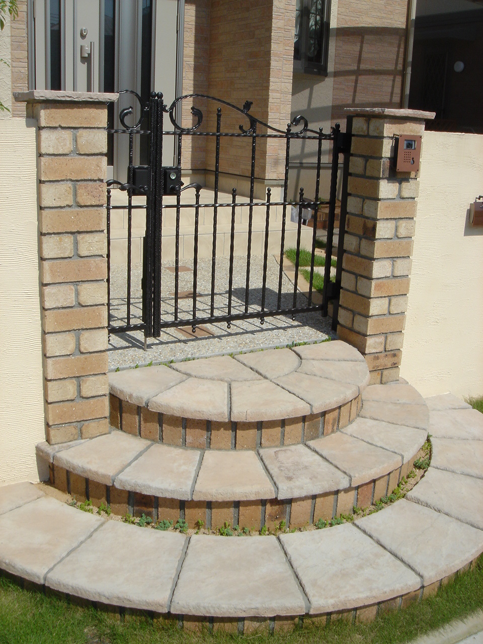 上り口を広く設け、自然と門扉へと誘導されます。可愛く仕上がりました。