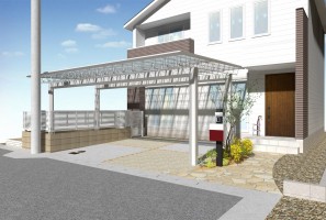 車庫のコンクリートも打ち終わり土の部分の植栽スペースに