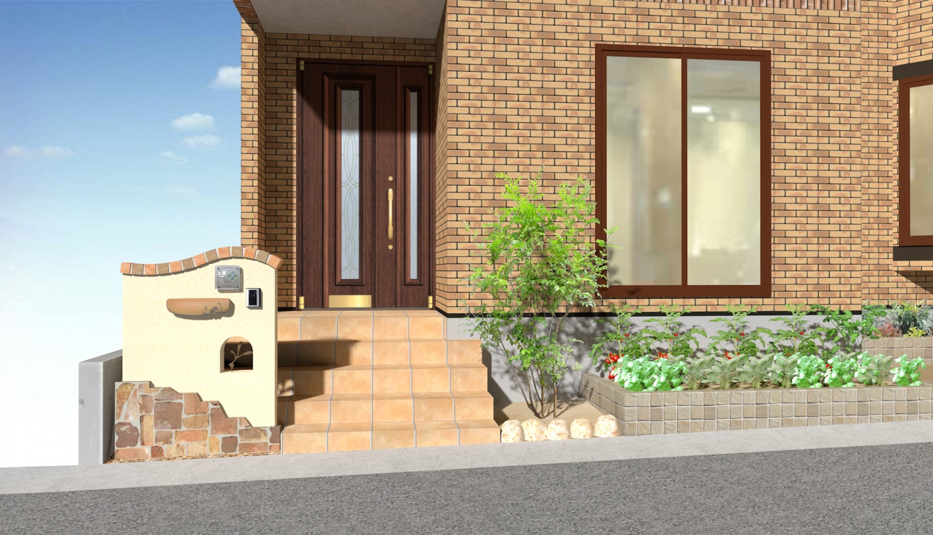 煉瓦を使用した可愛いイメージの門柱