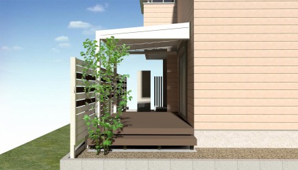 掃き出し窓から段差の少ないウッドデッキで