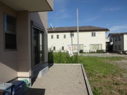 お庭にもガーデンテラスが付きまわりは芝生を張っていきます