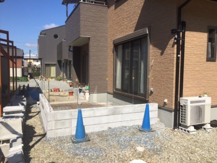 ココマガーデンルームL字腰壁工事 姫路市K様邸 2015年9月21日(MON)ココマガーデンルームをご依頼いただいています姫路市K様邸下地のブロック工事が進み、ウッドデッキの土台となるコンクリートを打設します図面で見るより実際のスペースを確認するとやはり広いですこの連休明けから、更にカタチになっていきます今後の工事を進める上で お客様にも現地で確認/お話させていただき問題なく進んでいることをお伝えしましたKajiwara ココマガーデンルールL字腰壁 下地15cmブロック積み ガーデンルーム内ウッドデッキ下地コンクリート準備