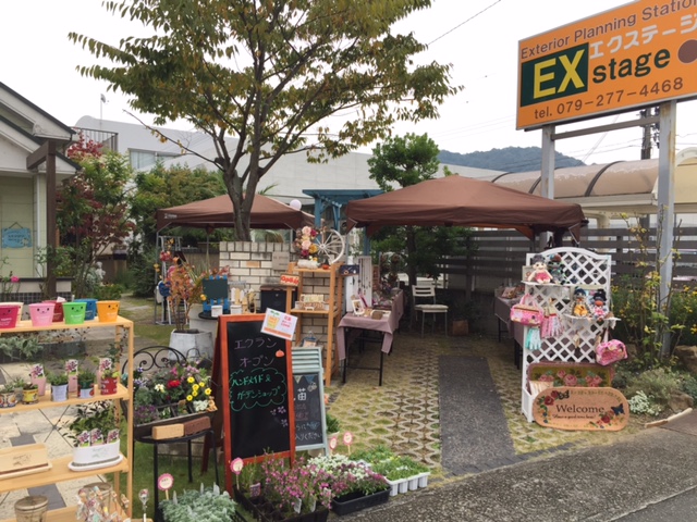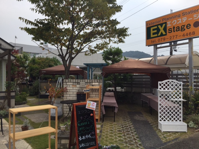 今日も元気にオープンです 2015年10月10日(SAT)平日はモデルガーデンのココマでハンドメイドショップを営業しているのですが週末は車通りや人通りの多い西側モデルガーデンで営業しますですから週末の朝はテントの設営から始まります まずはテントを広げて長テーブルを設置します そして作家さんの作品やガーデングッズ花苗等をディスプレイします曇り空ですが今日も元気にエクステージ・エクラン オープンですKajiwara