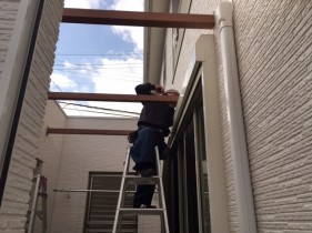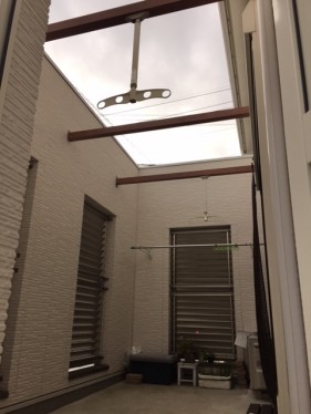 インナーテラスに竿掛け取り付け工事 2015年12月1日(MON)今日から12月です今年も残り1ヶ月となりました日中の気温はさほど低くなく 現場で動いていれば少し汗ばむくらい暖かいです今日は職人さんとインナーテラス部分に竿掛けを取り付けに行ってきましたデザイナーズパーツを使って桁を作りそこに着脱式の竿掛けを取り付けます少し苦戦しましたが木目がいいアクセントとなり いい感じに出来上がりました 施工前 施工状況(山中職人) 施工後