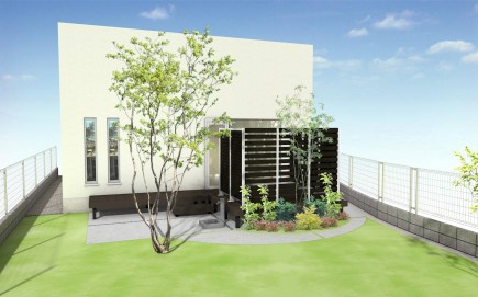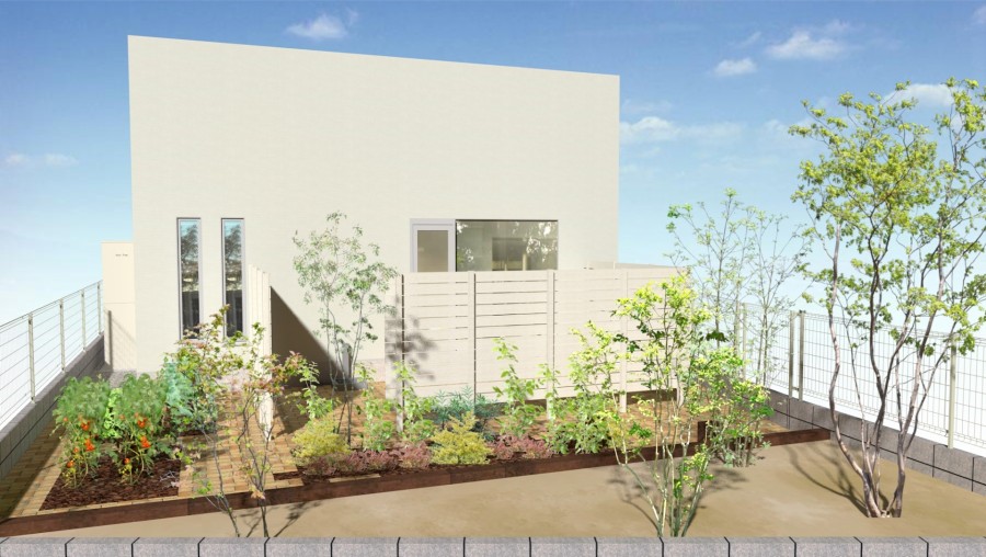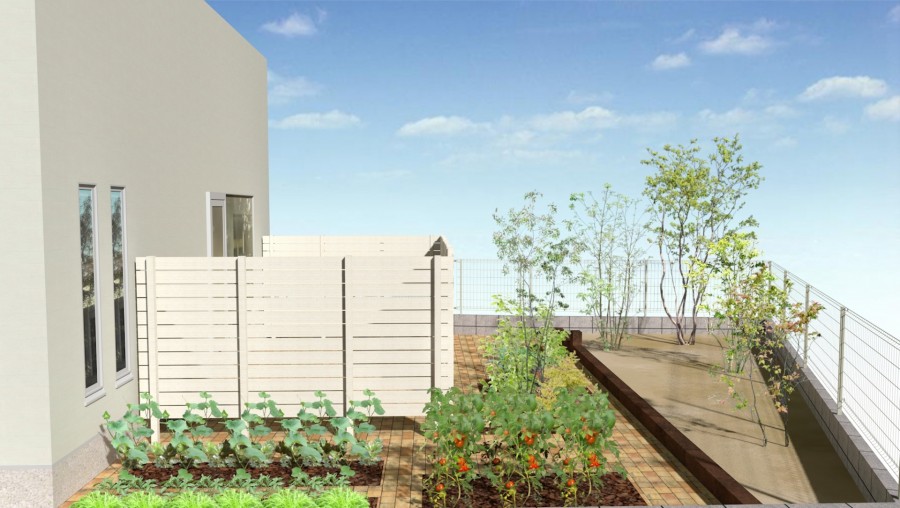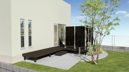 ウッドデッキとハイパーティションを設置するプランです