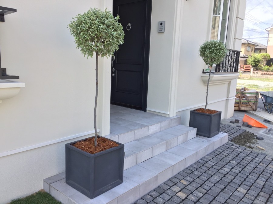 玄関前に雰囲気の合う鉢植えを置くだけで建物が引き立ちます