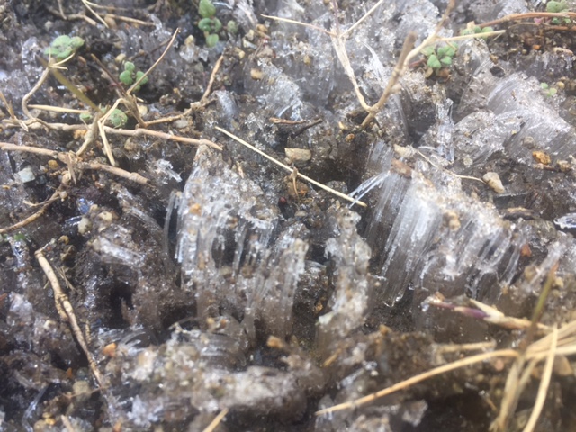 この冬は、本当に寒く、当社の庭で霜柱を発見しました。