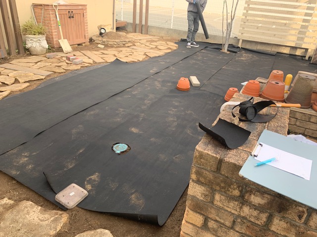 まず防草シートを全面に敷いて